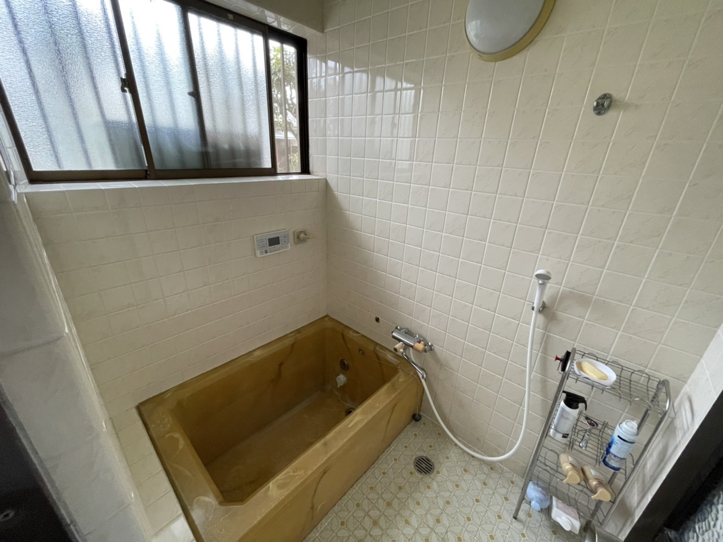 Before:昔ながらのタイル張りの浴室は、冬場の足元の冷え込みが厳しく、ヒートショックのリスクも。また、タイルの目地に深く入り込むカビで、毎日のお掃除が大きな負担となっていました。