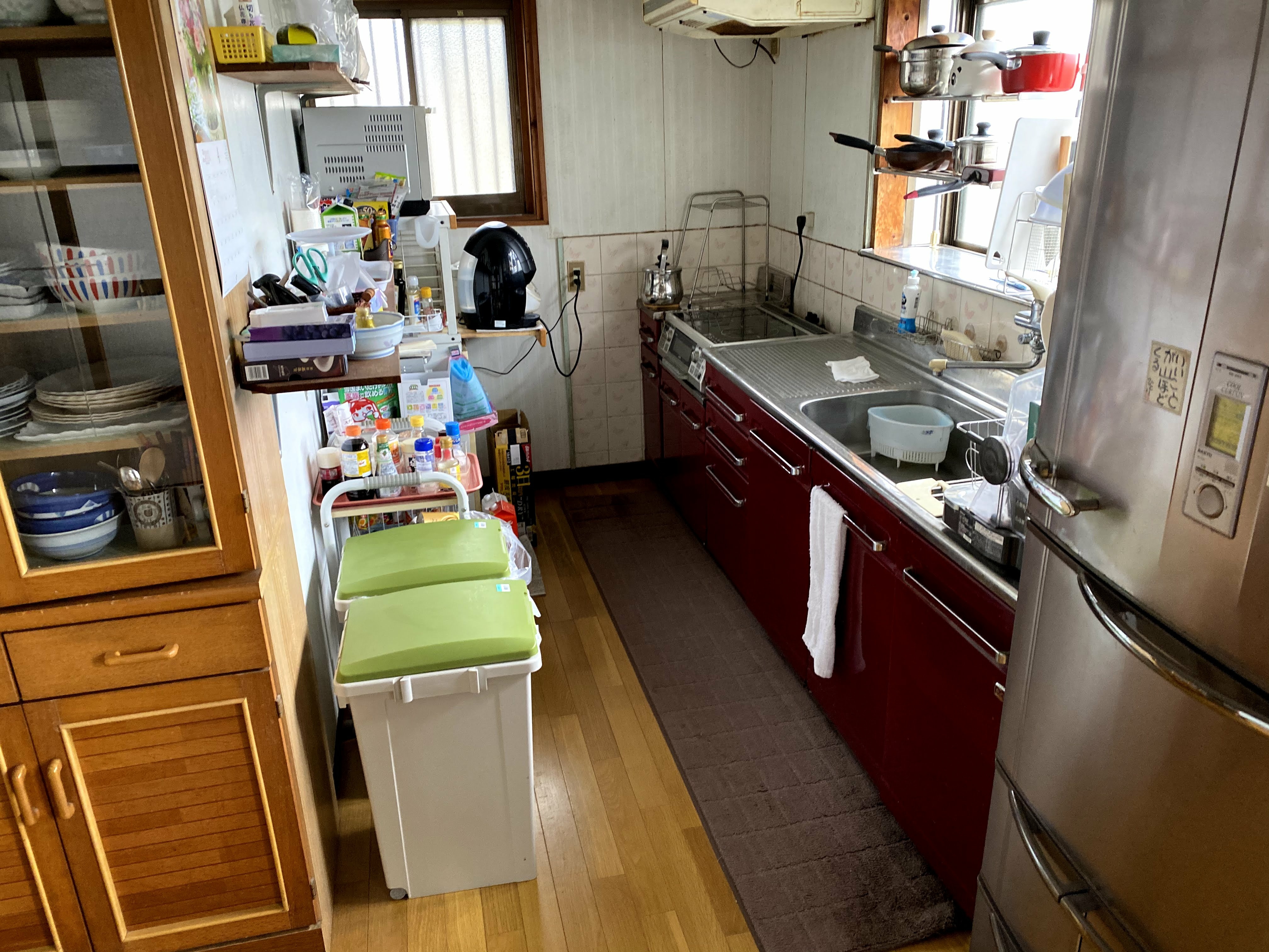 Before:長く大切に愛用してきたキッチンですが、収納が足りず、窓際やカウンターの上はモノでいっぱいに。